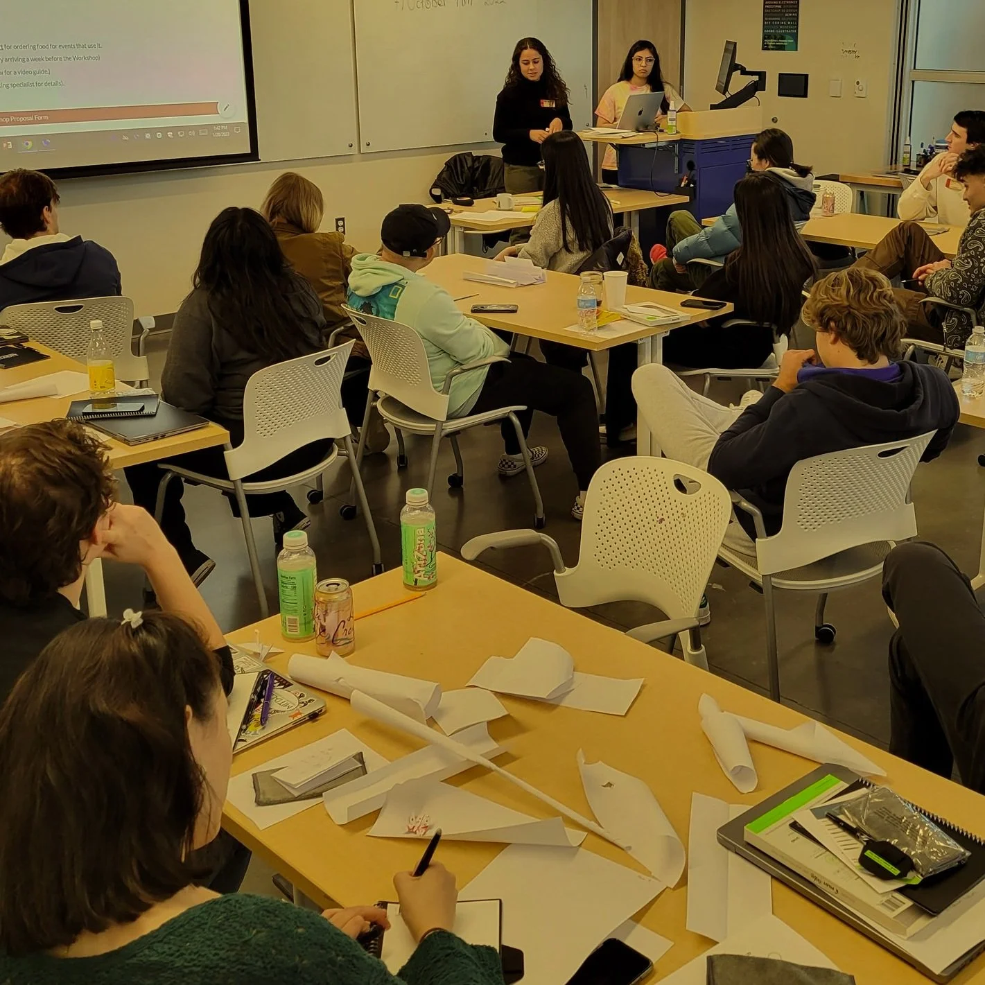 The Teaching Studio is our flexible classroom space—ideal for trainings, presentations, and team-based project work. It is the primary class space, and is used throughout most days. While not in use, it can be reserved here.