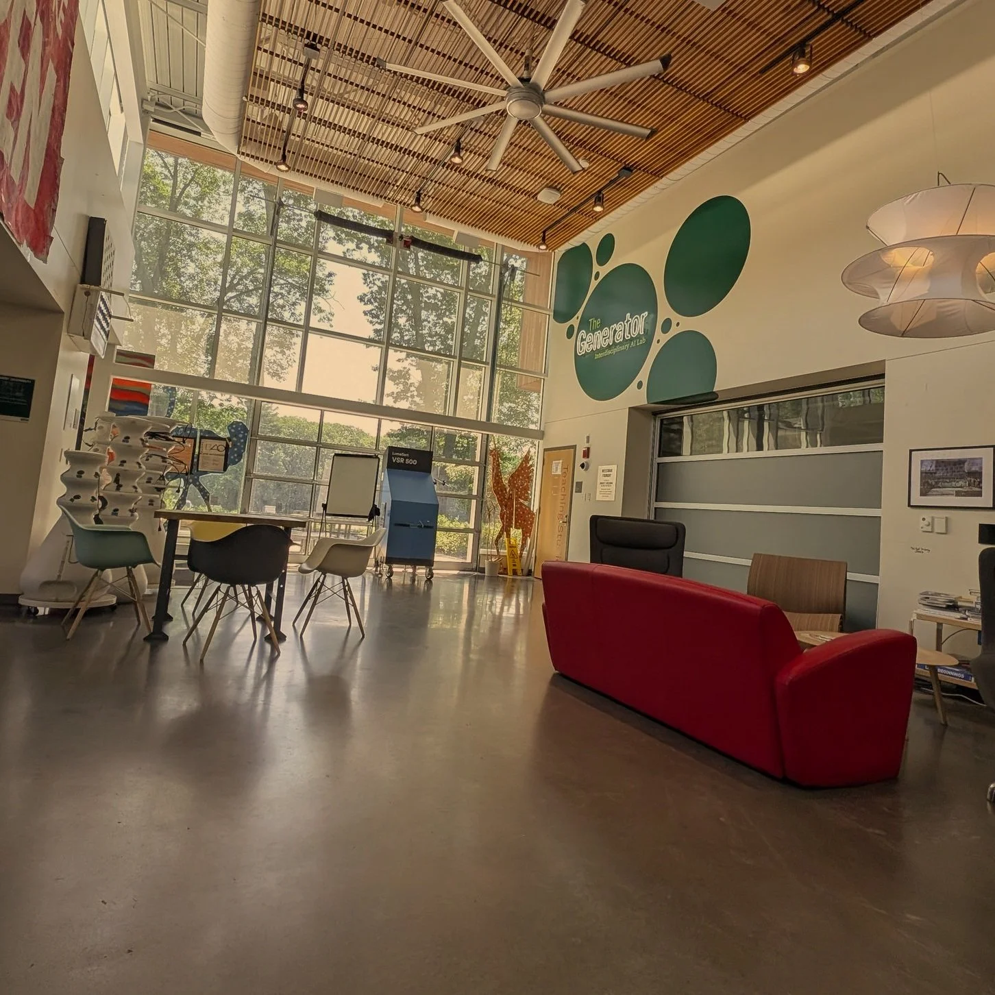 The Ideation Lounge welcomes you into the space. Located near the entrance and adjacent to the kitchen and studio, it’s a comfortable zone for gathering, chatting, and getting your bearings—whether you're here for a meeting, a brainstorm, or just to see what’s happening.